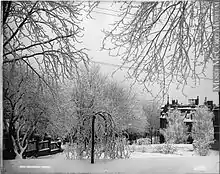 In 1862, the Victoria Skating Rink opened its doors on Drummond Street. The rink is best known for being the site of the first recorded organized indoor ice hockey game on March 3, 1875.[3] It was also home to the first Stanley Cup playoff game.[4] It was also the venue for numerous other activities such as the Montreal Winter Carnaval, fancy balls, exhibitions, and concerts.