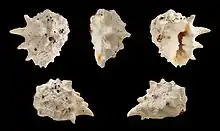 Five views of a shell of Drupa ricinus