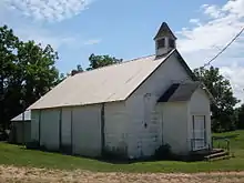 Old church building beside Route 95 in Drury, Missouri