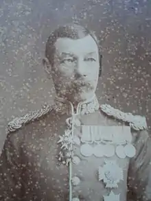 Drury-Lowe was appointed Companion of the Order of the Bath in 1879. In the 1882 Anglo-Egyptian War, he received the surrender of Urabi Pasha.[10] He was publicly thanked in the House of Commons, and knighted on 18 November 1882.[1] He was Inspector of Cavalry at Aldershot from 1885 to 1890.[11] He was promoted to Lieutenant-General in 1890. He became Colonel of the 17th Lancers in 1892.[1]
