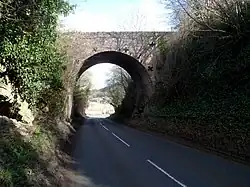 Dry Arch Bridge in Goodrich, Herefordshire, England, built in 1828, is one of the earliest examples of a bridge built specifically to carry a minor road across a more major one without the need for a road junction.[1] It was constructed to carry the existing old road between Goodrich and Welsh Bicknor over a cutting for a new-built road connecting Kerne Bridge with Goodrich. It was built with a single span, using local sandstone, at least some of which came from the cutting beneath the bridge.[2] It was also constructed to allow pedestrians to cross from one road to the other three-dimensionally without a lengthy diversion.[1]