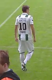 On 10 April 2012, it was announced that Tadić had signed for Twente in a €7.7 million move from Groningen.[8] In his debut game on 12 August 2012, he scored two goals against his former club.[9] He finished his debut season as the team's second-highest scorer with 16 goals in all competitions, two less than Nacer Chadli.[10] In the following season, Tadić again scored 16 goals across all competitions, being the team's top scorer.[10]