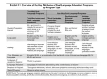Dual language programs vary in the kinds of instruction provided but generally implement many of the following features: