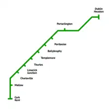 | Dublin–Cork Main Line | ||||||||||||||||||||||||||||||||||||||||||||||||||||||||||||||||||||||||||||||||||||||||||||||||||||||||||||||||||||||||||||||||||||||||||||||||||||||||||||||||||||||||||||||||||||||||||||||||||||||||||||||||||||||||||||||||||||||||||||||||||||||||||||||||||||||||||||||||||||||||||||||||||||||||||||||||||||||||||||||||||||||||||||||||||||||||||||
