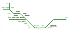 A non-geographic diagram showing the Dublin - Westport/Galway line