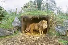 In 1844 the zoo received its first giraffe, and in 1855 it bought its first pair of lions. These bred for the first time in 1857. Reptiles got their own house in 1876.[15]