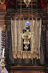 Located in one of the many tiny streets of the Old Town of Dubrovnik, it is connected to a neighboring building which has long been owned by the Tolentino family, who have been caretakers of the synagogue for centuries.[2] The internal layout is different from other European synagogues and has gone numerous refurbishments throughout the centuries, and has a mixture of designs from different eras. The building has sustained damage several times, with the great earthquake in 1667, World War II, and the Croatian War of Independence in the 1990s. The damage has since been repaired as closely as possible to its original design, and the synagogue reopened in 1997.[4] The small museum contains many artifacts from throughout the Jewish community's history in the city.
