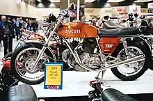 left 1972 Ducati 750 GT from a Vintage Motorcycle Enthusiasts collector at the Seattle International Motorcycle Show.
