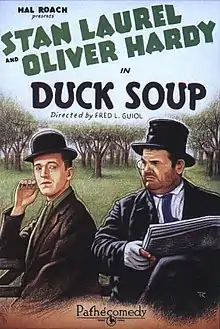 Duck Soup is a silent comedy short film starring Stan Laurel and Oliver Hardy prior to their official billing as the duo Laurel and Hardy. The team appeared in a total of 107 films between 1921 and 1951.