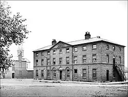 The barracks were commissioned as part of the response to the Priestley Riots; they were designed by John Rawsthorne and completed in 1793.[1] Although intended for cavalry regiments, they were used by the Royal Horse Artillery from 1878[2] and became the home of 1st South Midland Field Ambulance during the First World War.[3] The barracks were demolished in 1932 and the site is now occupied by the maisonettes of the Ashcroft Estate.[4]