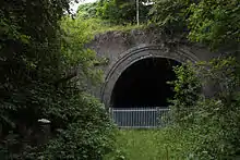 The tunnel was regularly used by passenger trains until 1964, when the town's station closed along with the remaining passenger stations on the line,[1] although goods trains were still allowed to use the line. It finally closed to all trains on 19 March 1993, when the section of railway between Walsall and Brierley Hill was closed after some 150 years in use. A cable laying train passed through the tunnel on 1 July 1993 - nearly four months after the line was officially closed.