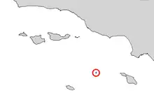 All of the known sites supporting Dudleya traskiae are in rocky areas on the steep slopes of the island's perimeter or on outcrops within shallow canyons where vegetation is low-growing. With the exception of a small population on the far western portion of the island,[8] all locations, historic as well as present day (as of 1989) occur on the eastern, southeastern and southwestern slopes of the island. No Dudleya traskiae plants presently occur on the northern and north-western sides of the island although they do occur elsewhere on north-facing slopes. The habitat of Dudleya traskiae has been described as a maritime cactus scrub, and by Holland (1986)[9] as southern coastal bluff scrub. This assemblage of plants, characterized by cholla (Cylindropuntia prolifera), prickly pear (O. oricola and O. littoralis), boxthorn (Lycium californicum), Santa Barbara Island buckwheat (Eriogonum giganteum ssp. compactum) and annual forbs and grasses, is restricted to the perimeter of the island and south-facing slopes of the canyons.[10]