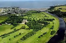The course is bounded by the River Deveron, which proves to be a hazard at a number of holes. The river flows into the sea through the seven-span Banff Bridge,[9] which was completed in 1779 by John Smeaton, and forms the backdrop to the closing holes.