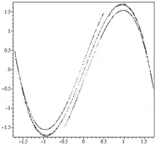 The Duffing map (also called as 'Holmes map') is a discrete-time dynamical system. It is an example of a dynamical system that exhibits chaotic behavior. The Duffing map takes a point (xn, yn) in the plane and maps it to a new point given by
