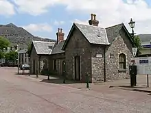 The FR closed progressively, the final axe falling in 1946, though quarries continued to use the line through the station to get ever-diminishing quantities of product to the exchange sidings at the LMS station.[14] The station itself was eventually fenced off and its surrounds landscaped to become a car park.[15] This process continued until 1962[16] with the eventual removal of all lines through the Duffws site when the quarries either closed or switched to using lorries to take slates to customers.
