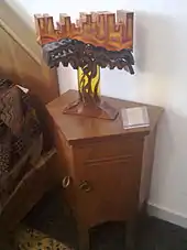 Cambelotti was born in Rome. He received a diploma in accounting, but soon after receiving it he enrolled at an applied arts education program at the Industrial Artistic Museum in Rome,[1] where he learned metal engraving. He also travelled to Naples, Athens and Istanbul to learn more.[2] He was a proponent of the ideas of William Morris, and like Morris believed in the need to restore craftsmanship and quality to visual art, ornamentation and design. Cambellotti was also drawn to the visual vocabulary of Art Nouveau. He produced illustrations in that style for magazines, books and newspapers, and his furniture design (he was known for "Cambellotti lamps" and tables) is considered emblematic of Art Nouveau concepts. His gifts were recognized and his illustrations of Dante's Divine Comedy won the Alinari Prize in 1901[3] while he was still in his twenties. He discovered theater production and set design a few years later and quickly established a name for himself in that area as well. Yet another medium he that suited his sensibility and talents was stained glass, and from 1910 into the 1920s he exhibited notable stained glass works,[3] in addition to being one of the organizers for the shows themselves.
