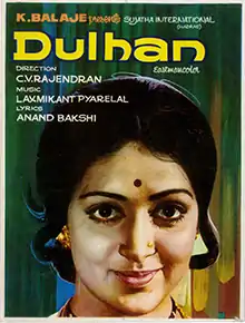 Dulhan (transl. Bride) is a 1974 Indian Hindi-language drama film, produced by B. Anand Valli under the Sujatha International banner and directed by C. V. Rajendran. It stars Jeetendra, Hema Malini, Jamuna and music composed by Laxmikant Pyarelal. The film is a remake of 1972 Kannada movie Yaava Janmada Maitri [1] which was earlier remade in Telugu as Sarada (1973) and in Tamil as Radha (1973).[2][3]