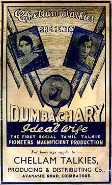Dambachary (transl. a vain man) is a 1935 Tamil-language film directed by Manik Lal Tandon. The film stars M. R. Krishnamuthi, P. S. Rathna Bai and P. S. Saraswathi Bai. P. S. Rathna Bai and P. S. Saraswathi Bai are well known as Palayamkottai sisters.[2]