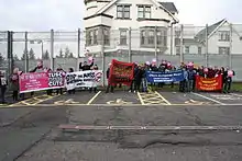 Dungavel has faced criticism from organisations like Detention Action and the Scottish Refugee Council, due to breaches of human rights.[11][12] In 2015, Her Majesty's Inspectorate of Prisons (HMIP) found that vulnerable individuals were being detained in contravention of rules designed to protect vulnerable people from detention.[13][14]