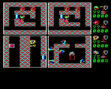 Up to four players are able to play simultaneously, sharing the keyboard to control their characters (ranger, wizard, barbarian, and female warrior). Each player views their character's progress via one of four viewports that divide the screen. As their character leaves a room, the viewport changes to show the new room.
