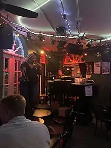 It currently consists of a piano bar on the ground level that opens up to a patio café and a lounge bar upstairs leading to the cabaret theatre, also on the second floor. The piano bar features a regular lineup of piano players, singing bartenders, and open-mic events while the upstairs bar features dance music and drag performances. The cabaret theater hosts a variety of musical, theatre, and comedy performances.
