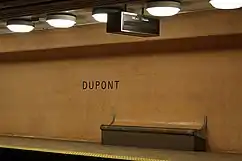 Dupont is a subway station on Line 1 Yonge–University in Toronto, Ontario, Canada. It is located on Spadina Road at Dupont Street in The Annex neighbourhood of the city. Wi-Fi service is available at this station.[2]