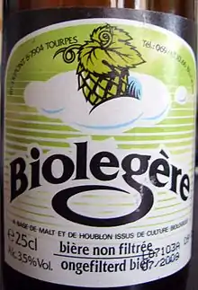 - Biolégère (3.5% ABV). A light blond beer, brewed with only organic ingredients.