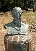 The Durban Botanic Gardens was established to participate in the quest of Kew Gardens to establish a series of botanic gardens across the world which would assist in the introduction of economically valuable plants, and to supply plants to Kew that were new to science.[1] The first garden was established in December 1849 by Dr Charles Johnston on the edge of the Berea Ridge next to the Umgeni River (near Quarry Road).[1] However the death of Johnston's wife in 1850 caused him to resign his position overseeing the gardens.[1] A Scot called Mark McKen then took his place and began to establish gardens of plants of economic value such as sugar cane, tea, coffee and pineapples.[1] In 1851 the botanical gardens were relocated closer to town, to its present site.[3] From 1853 to 1860 there were various curators, the most notable of which was Robert Plant, who died of malaria while collecting plants near Lake St. Lucia.[1] McKen then returned in 1860 and was the curator for the next 12 years; until his death in 1872.[1]