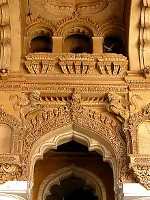 The Durbar Hall at the Fateh Prakash Palace in Udaipur, Rajasthan, is one of the most lavish Durbar Halls in India and one of the grandest chambers in Udaipur. It is decorated with paintings of Maharanas and various weapons adorn the walls. The hall has an exquisite ceiling and is surrounded by viewing galleries from where the ladies of the palace could view the proceedings while remaining veiled. Lord Minto, the Viceroy of India, laid the foundation stone for the Durbar hall in 1909.