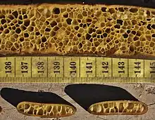 Cross-section of a D. antarctica frond, showing Pyrophyllon subtumens growing on the outer surface
