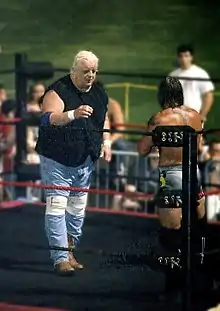 During his stint as booker, JCP were engulfed in aggressive competition with the World Wrestling Federation (WWF).[11] When the WWF introduced Mike Jones as Ted DiBiase's bodyguard, Bobby Heenan suggested naming the character Virgil as an inside joke on Dusty's real name.[23] Also in the late 1980s, Rhodes became synonymous with what would become known as the "Dusty finish", a trick ending in which a wrestler would win a match while the referee was knocked out, and the decision would be overturned.[11][12]