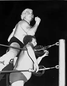 In 1968, Rhodes left Texas and entered the Kansas City territory, tagging with fellow Texan Dick Murdoch to form the tag team The Texas Outlaws.[9][10] The team traveled both nationally and internationally, appearing in Big Time Wrestling (Texas), NWA Western States Sports (Texas), NWA Detroit, National Wrestling Federation (NWF), Championship Wrestling from Florida, World Championship Wrestling (Australia), Tri-State Wrestling, the American Wrestling Association (AWA), and International Wrestling Enterprise (Japan).[3][9][11]