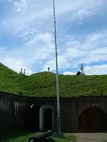 To the right side of the bastion there is a water postern. Next to it is the bastion's power room. Near the tip of the bastion there is a mortar casemate with quarters for officers and soldiers and is home to a replica 29 cm mortar.