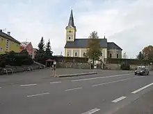 The main landmark of Dvorce is the Church of Saint Giles. It was built in the Neoclassical style in 1752–1753 on the site of an older church and modified after 1834. The tower dates from the second half of the 16th century.[5]