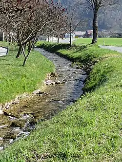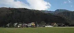 The local church is dedicated to Saint Nicholas and belongs to the Parish of Cerklje na Gorenjskem.[4] It was first mentioned in sources from 1485,[5] and the current building dates from 1755.[2] The main altar was created by Jurij Tavčar (1820–1892) and features a 1755 painting by Valentin Metzinger (1699–1759).[2]