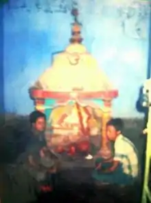 Goddess Dwarbasini is a stone idol with no image. She here is goddess Durga with Laxmi, Saraswati, Kartik, and Ganesha. This temple was built near about 30 years ago. Before this temple was made, Dwarbasini was covered with the bamboo umbrella, made by Santhals.[4]