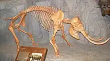 The Tilos dwarf elephant is the first dwarf elephant whose DNA sequence has been studied. The results of this research are consistent with previous morphological reports, according to which Palaeoloxodon is more closely related to Elephas than to Loxodonta or Mammuthus.[15] On the other hand DNA analysis in 2017 conclude that the closest living relative oft the genus Palaeoloxodon is the African forest elephant (Loxodonta cyclotis).[16] The paper suggests that the current view of elephant evolution is "in need of substantial revision".[16] After the study of new osteological material[12] that has been excavated in anatomical connection in the Charkadio Cave on Tilos island the new species name Palaeoloxodon tiliensis has been assigned to the Tilos dwarf elephants. It was the latest paleoloxodontine to survive in Europe. They did not become extinct until around 4000 BC, so this elephant survived well into the Holocene. An exhibition is available at the Municipality of Tilos Island, soon to be transferred to the new building near Charkadio Cave.