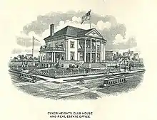 One of the many focal points of the neighborhood was the Dyker Heights Club, which started in October 1896.[9] By spring of 1898 the club had a $30,000 clubhouse designed by Albert Edward Parfitt on an $8,500 lot, measuring 200×200, located on the northeast corner of 13th Avenue and 86th Street. Johnson moved his real estate office into the clubhouse and hired a full-time architect, Constantine Schubert, who was also a Dyker Heights homeowner. This grand, neo-classical building was demolished in 1929 by the Archbishop John Hughes Knights of Columbus Club, when they acquired the property for $60,000.[21]
