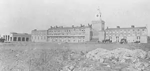 The first house built at the top of the hill (what is now 11th Avenue and 82nd Street, at about 110 feet (34 m) above sea level) was built in the late 1820s by Brigadier General René Edward De Russy of the US Army. De Russy was a military engineer who built many forts in the US – from the Canada–US border and the eastern seaboard to the Gulf of Mexico and the Pacific coast – including Fort Hamilton in Brooklyn.[6] Since this was the tallest natural point in southwest Brooklyn, he built his homestead here – it afforded a clear view of the harbor and its defenses, especially Fort Hamilton which was complete by November 1831.[7] De Russy died in 1865 and his wife, Helen, sold the property in 1888 to Jane Elisabeth Loveridge and Frederick Henry Johnson.