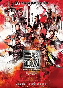 Dynasty Warriors is a 2021 Hong Kong fantasy-action film based on the Japanese video game franchise of the same title by Omega Force and Koei Tecmo. Directed by Roy Chow, the film stars an ensemble cast from Hong Kong, China and Taiwan, including Louis Koo, Carina Lau, Wang Kai, Tony Yang, Han Geng, Justin Cheung, Gulnazar and Ray Lui. The film was released on 29 April 2021 in Hong Kong, and in China on 30 April 2021.