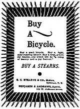 ![]() Buy a Bicycle, Buy a Stearns - Benjamin & Andrews, agents at 121 West Jefferson Street in Syracuse, New York 1895 |