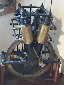 E.J. Pennington is probably best known today for his pioneering motorcycles.[3] He is sometimes credited with having invented the word "motorcycle"; he used the term as early as 1893. Pennington built and demonstrated his original motorcycle design in Milwaukee in 1895. Apparently not finding any backers for his idea he took it to England where he sold the patents for it to Harry John Lawson's The Great Horseless Carriage Company Limited in 1896 and joined that company's board of directors. Lawson had two more prototypes built[4] but nothing further came from the design. Pennington made many claims for his motorcycle, but it is doubtful if any of them are true. The design was very primitive and a few journalists of the time expressed doubts as to whether or not it would even run, though The Autocar reported in June 1896: "...although the motor required some little alteration, the speed developed was said to have varied from thirty to forty miles per hour."[5] Notable features were that the engine's cranks were connected directly to the rear axle, the cylinders had no cooling fins, and Pennington made use of balloon tires - an invention he is also often credited with.[6]