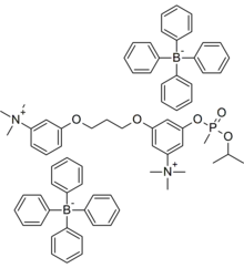 N,N,N-Trimethyl-3-({[(propan-2-yl)oxy](methylphosphonoyl)}oxy)-5-{3-[3-(trimethylazaniumyl)phenoxy]propoxy}anilinium bis(tetraphenylboranuide) | |