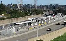 Initial plans had trains running on the Union Pacific Railroad right-of-way that runs parallel to State Route 4. After Union Pacific declined to grant trackage rights or allow laying of new tracks, the line was merged with a construction project already in the process of widening the adjacent freeway, by laying tracks in its median.[11] Construction of the Railroad Avenue station in Pittsburg had been uncertain as planning and construction progressed but was fully funded by the city to open with the rest of the extension.[12]