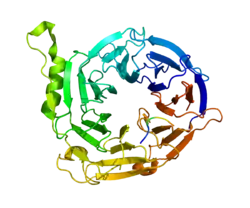 - Rietzler M, Bittner M, Kolanus W, Schuster A, Holzmann B (Nov 1998). "The human WD repeat protein WAIT-1 specifically interacts with the cytoplasmic tails of beta7-integrins". J. Biol. Chem. 273 (42): 27459–66. doi:10.1074/jbc.273.42.27459. PMID 9765275.
