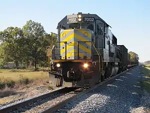 The SD50S designation was also used for five locomotives built by EMD Australian licensee Clyde Engineering, Adelaide for Hamersley Iron.[3] Shorter than production SD50s, they were equipped with a special double cab roof for insulation against the hot Australian desert sun in the Pilbara region. Withdrawn in November 1995, they were sold to National Railway Equipment Company and exported to the United States in February 1999 and used in national lease service.[4] They were subsequently sold to the Utah Railway in June 2001.[5][6] In June 2017, 6063 and 6064 were sold to the Chicago, Fort Wayne & Eastern Railroad, 6064 was relocated by Genesee & Wyoming to the Indiana & Ohio Railway and renumbered 5017.[7]