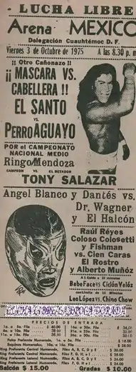 | 6 | El Santo defeated Perro Aguayo | Best two-out-of-three falls Lucha de Apuesta Mask vs. Hair match[1][5][6][7][9] | |