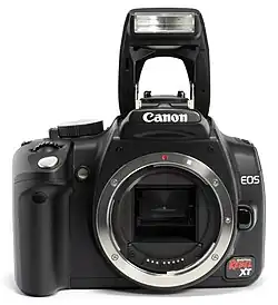 The Canon EOS 350D, known in the Americas as the EOS Digital Rebel XT and in Japan as the EOS Kiss Digital N, is an 8.0-megapixel entry-level digital single-lens reflex camera manufactured by Canon. The model was initially announced in February 2005. Part of the EOS range, it is the successor to the EOS 300D and the predecessor to the EOS 400D (or Digital Rebel XTi), which was released in August 2006.