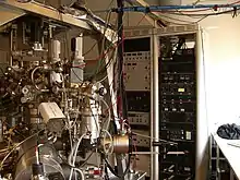 In 1887, Heinrich Rudolf Hertz discovered but could not explain the photoelectric effect, which was later explained in 1905 by Albert Einstein (Nobel Prize in Physics 1921). Two years after Einstein's publication, in 1907, P.D. Innes experimented with a Röntgen tube, Helmholtz coils, a magnetic field hemisphere (an electron kinetic energy analyzer), and photographic plates, to record broad bands of emitted electrons as a function of velocity, in effect recording the first XPS spectrum. Other researchers, including Henry Moseley, Rawlinson and Robinson, independently performed various experiments to sort out the details in the broad bands. After WWII, Kai Siegbahn and his research group in Uppsala (Sweden) developed several significant improvements in the equipment, and in 1954 recorded the first high-energy-resolution XPS spectrum of cleaved sodium chloride (NaCl), revealing the potential of XPS.[2] A few years later in 1967, Siegbahn published a comprehensive study of XPS, bringing instant recognition of the utility of XPS and also the first hard X-ray photoemission experiments, which he referred to as Electron Spectroscopy for Chemical Analysis (ESCA).[3] In cooperation with Siegbahn, a small group of engineers (Mike Kelly, Charles Bryson, Lavier Faye, Robert Chaney) at Hewlett-Packard in the US, produced the first commercial monochromatic XPS instrument in 1969. Siegbahn received the Nobel Prize for Physics in 1981, to acknowledge his extensive efforts to develop XPS into a useful analytical tool.[4] In parallel with Siegbahn's work, David Turner at Imperial College London (and later at Oxford University) developed ultraviolet photoelectron spectroscopy (UPS) for molecular species using helium lamps.[5]