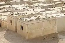 The land of the cemetery is considered holy and a special consecration ceremony takes place upon its inauguration. According to Jewish tradition, Jewish burial grounds are sacred sites and must remain undisturbed in perpetuity. Establishing a cemetery is one of the first priorities for a new Jewish community. A Jewish cemetery is generally purchased and supported with communal funds.[1] Placing stones on graves is a Jewish tradition equivalent to bringing flowers or wreaths to graves. Flowers, spices, and twigs have sometimes been used, but the stone is preferred because among the Jewish religion it is perceived specifically as a Jewish custom.[2]